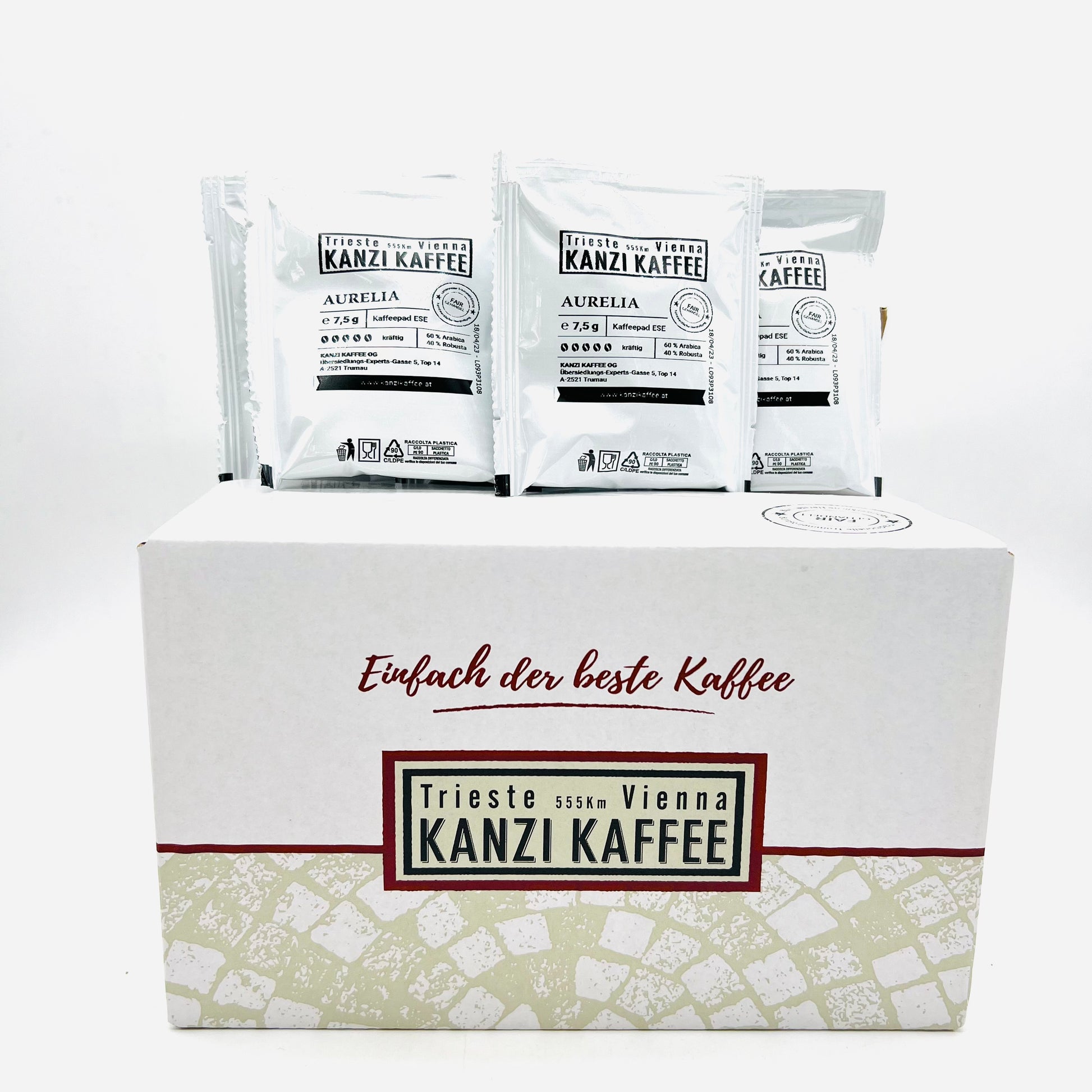 - in der handlichen, schönen 40 Stück Verpackung – ideal für zu Hause oder im Büro – kein neutraler Karton mehr, sondern KANZI KAFFEE Branding.